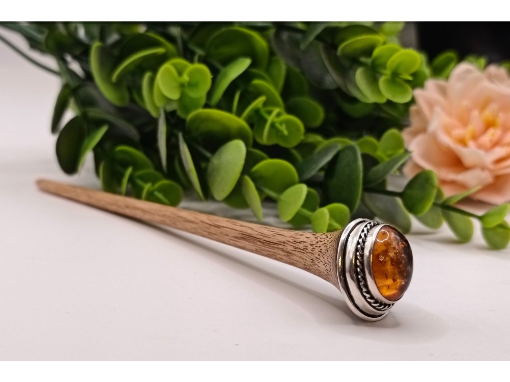Táto drevená palička je jedinečný vlasový doplnok, ktorý kombinuje striebro s jantárom a vytvára tak kúsok plný krásy a významu. Každý kus je ručne vyrobený našimi remeselníkmi na Bali a je starostlivo vyrobený tak, aby zdôraznil autentickú povahu a pozitívnu energiu, ktorá z nej vyžaruje.