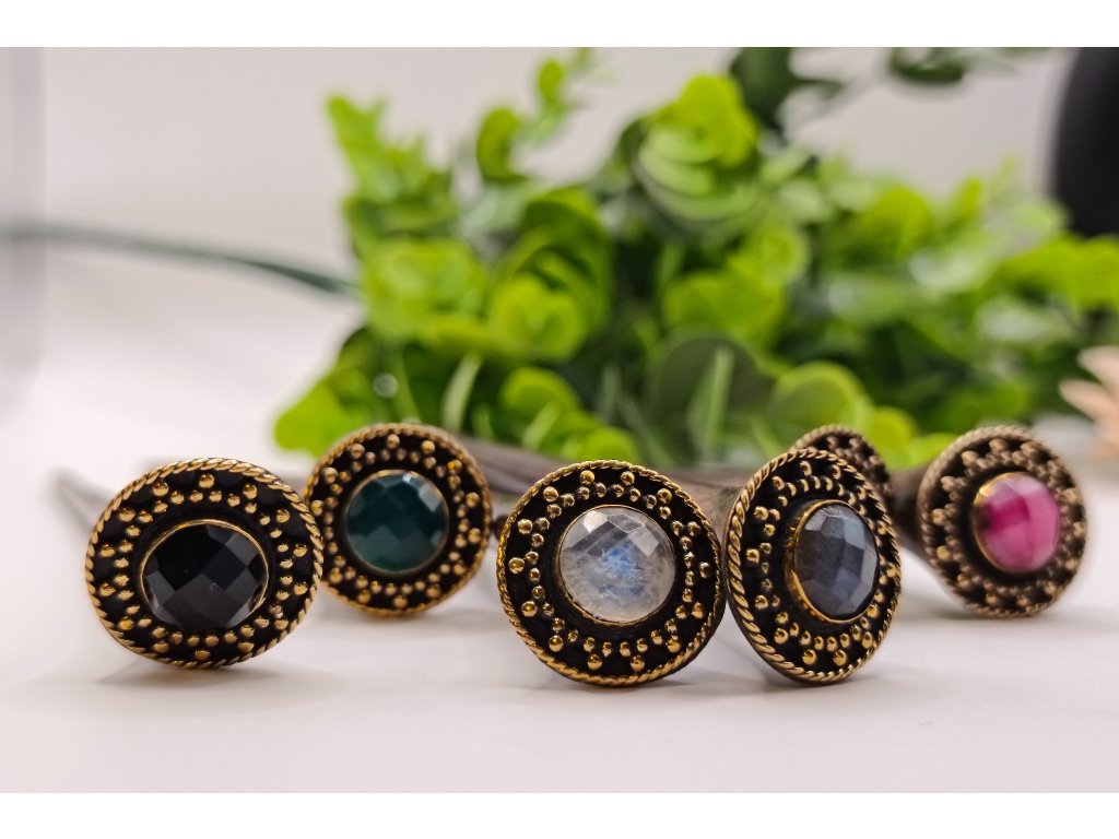 Ručne vyrobená mosadzná korálka s priemerom 20 mm s fazetovanými minerálmi