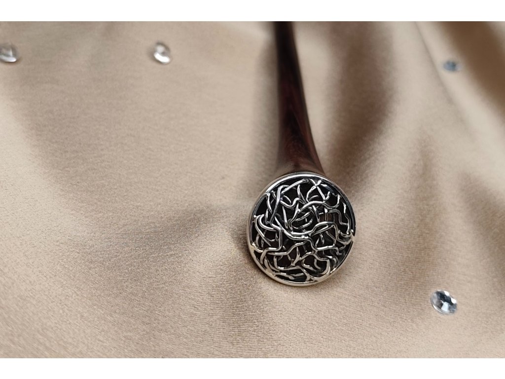 Táto palička do vlasov je oslavou umenia a jemnosti, ktoré definujú tradičné strieborné výrobky. Inšpirovaná filigránskou technikou, ktorá prepletá jemné nite a vytvára zložité a zmysluplné vzory, tento dizajn zachytáva podstatu sofistikovanosti a dôrazu na detail.