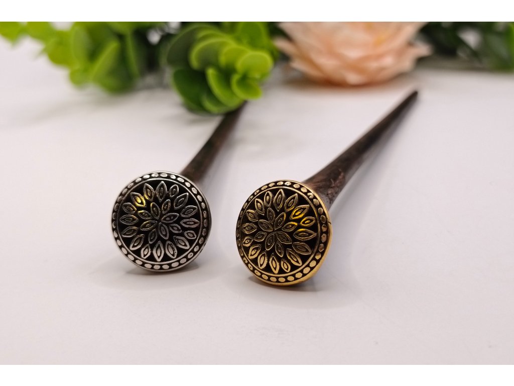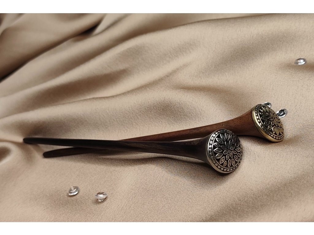 Túto peknú drevenú palicu do vlasov zdobí mosadzná alebo biela kovová korálka