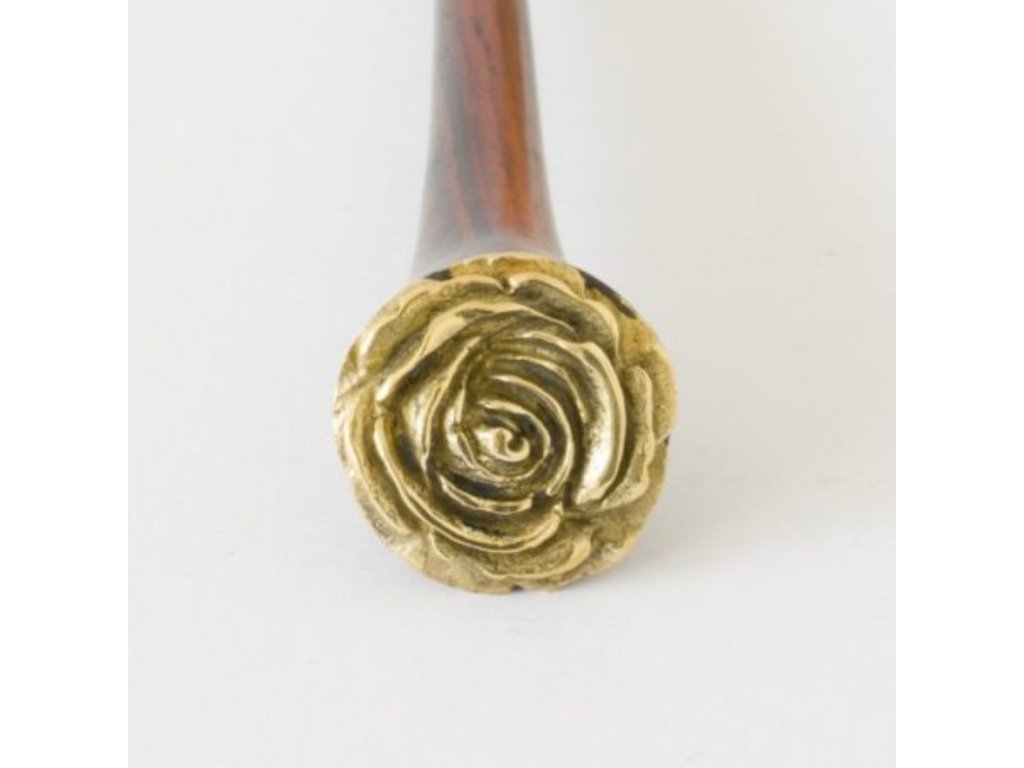 Túto peknú paličku zdobí krásna ručne vyrobená ruža z mosadze alebo bieleho kovu.